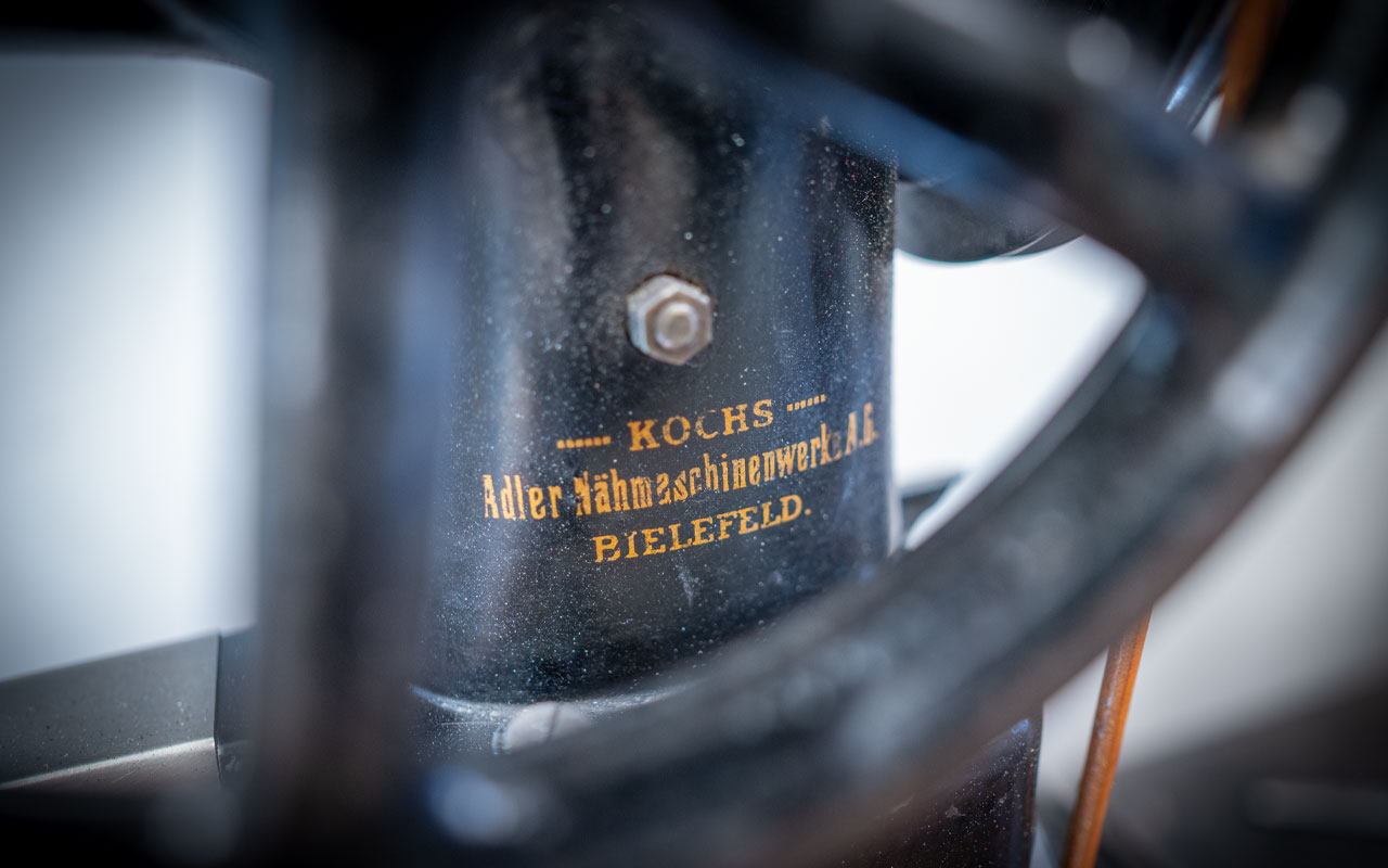 In unserer Werkstatt stehen zwei besondere Schätze: über 100 Jahre alte Nähmaschinen der «Kochs Adler Nähmaschinenwerke AG Bielefeld».